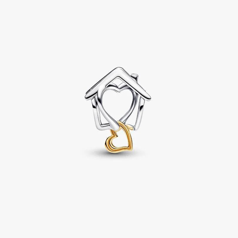 de oro de 14k presenta una casa calada con un corazón colgante y el